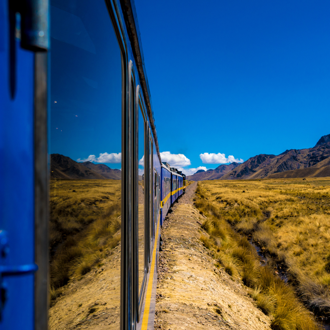 Today, travel across the vast Peruvian Altiplano on a daylong rail journey to Lake Titicaca, the highest navigable lake on earth. Golden plains, grazing llamas, distant peaks, and timeless villages roll past your window.